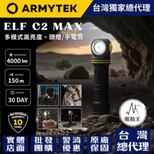 Armytek Elf C2 Max 4500流明 150米 高亮度多模式 手電筒/頭燈 USB-C 充電 磁吸尾蓋 21700