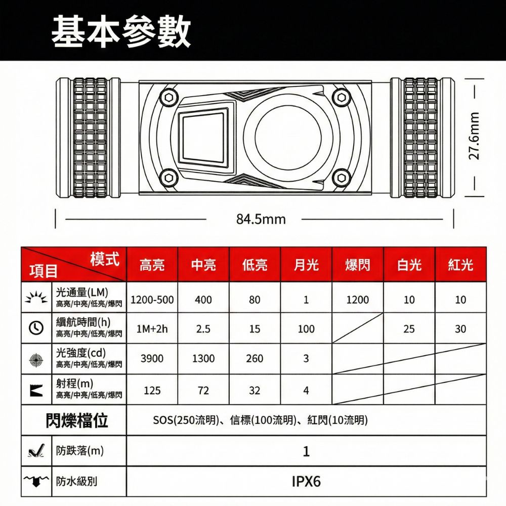 - 紅光模式:適合夜視保護與警示用途。