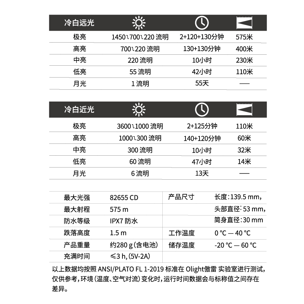 OLIGHT 行者Pro 4500流明 575米 聚泛三色溫手電筒 冷白/中白/暖白 TYPE-C