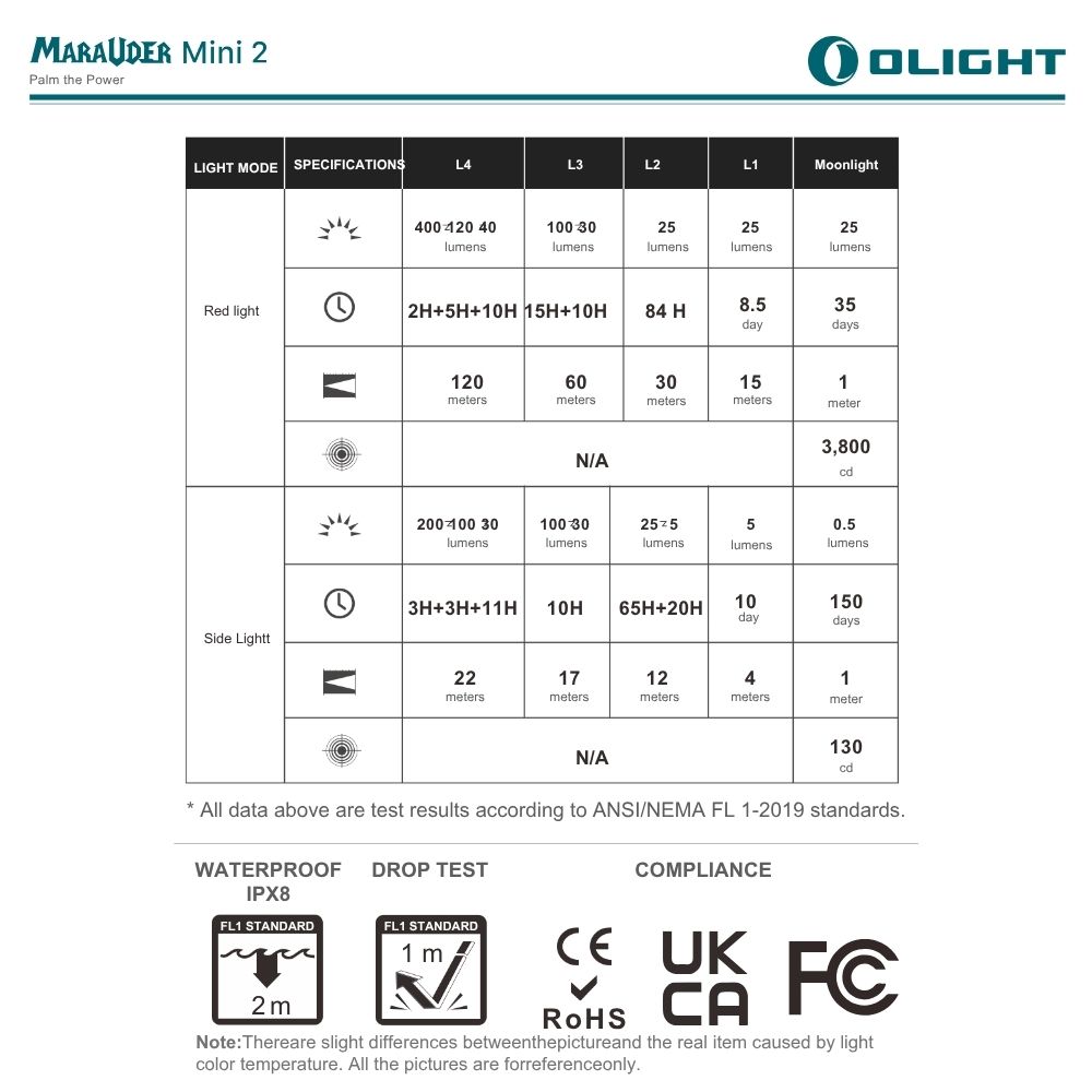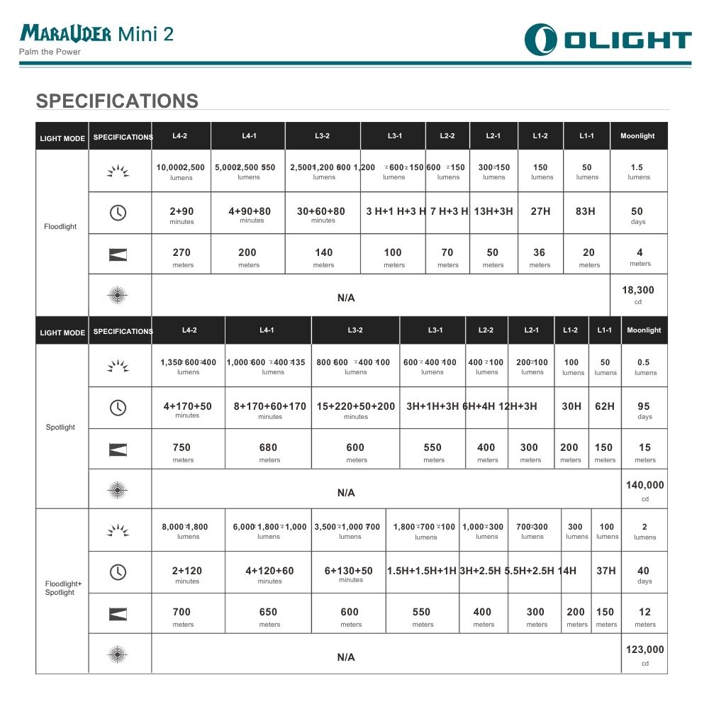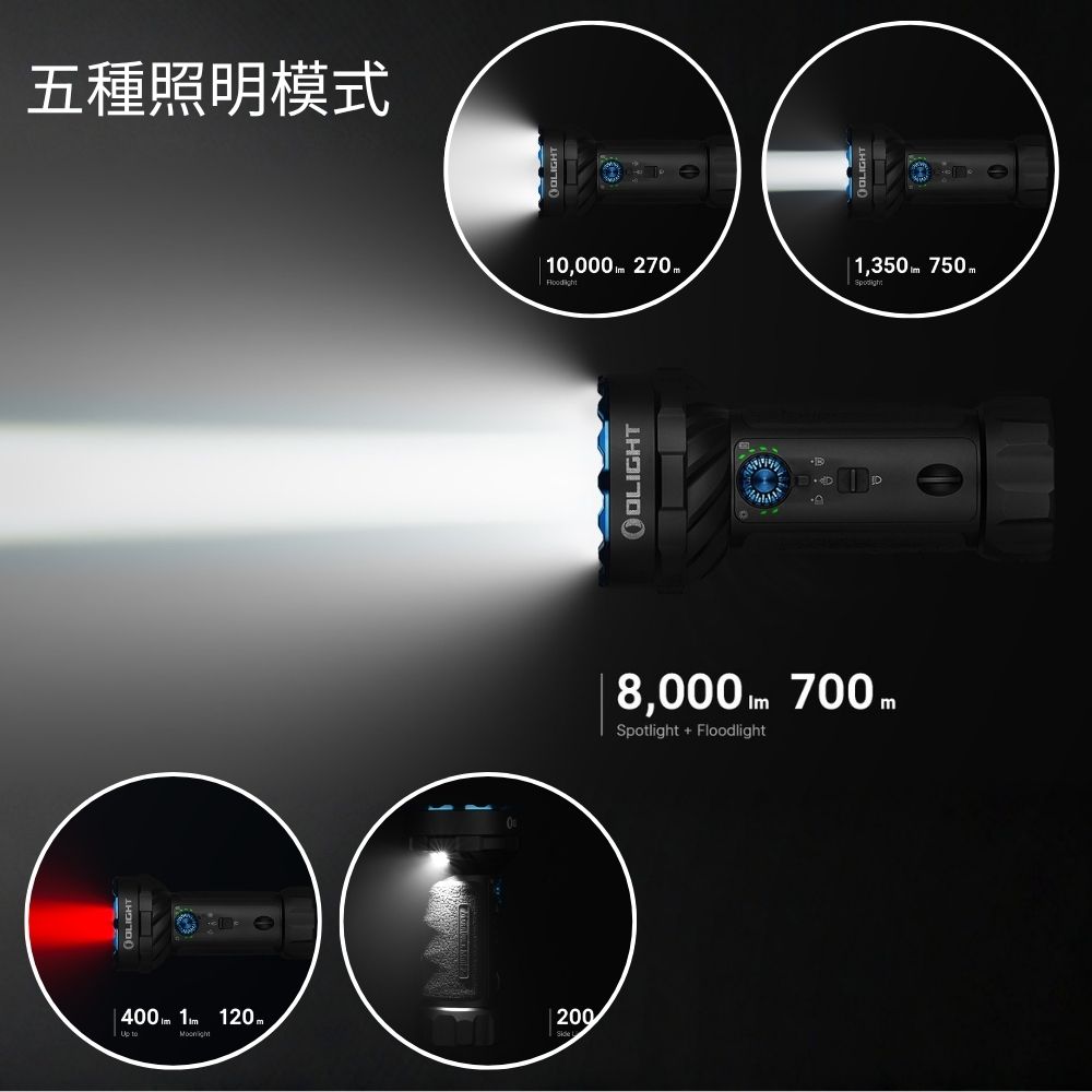 OLIGHT Marauder Mini 2 10000流明 750米 高亮度手電筒 五種照明模式 聚光 泛光 紅光 側燈