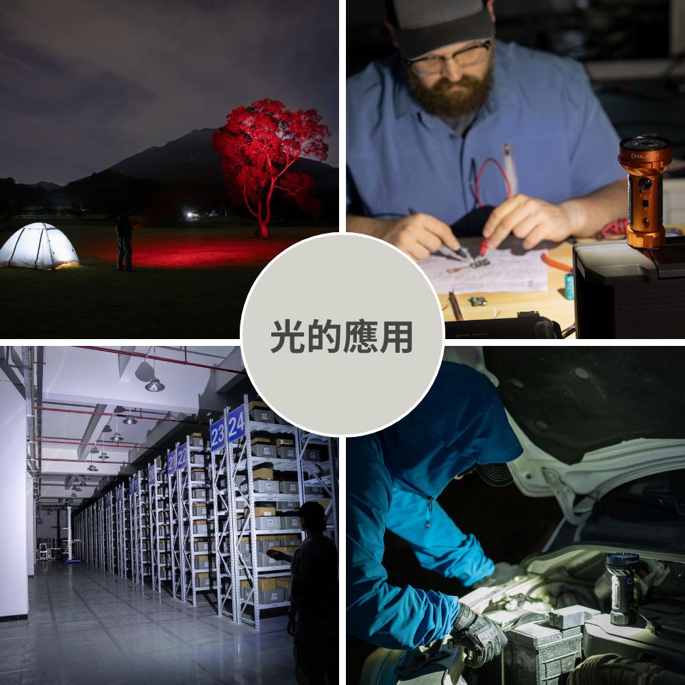 1.五種照明模式 泛光、聚光、雙光源、紅光與側燈,滿足多場景需求。