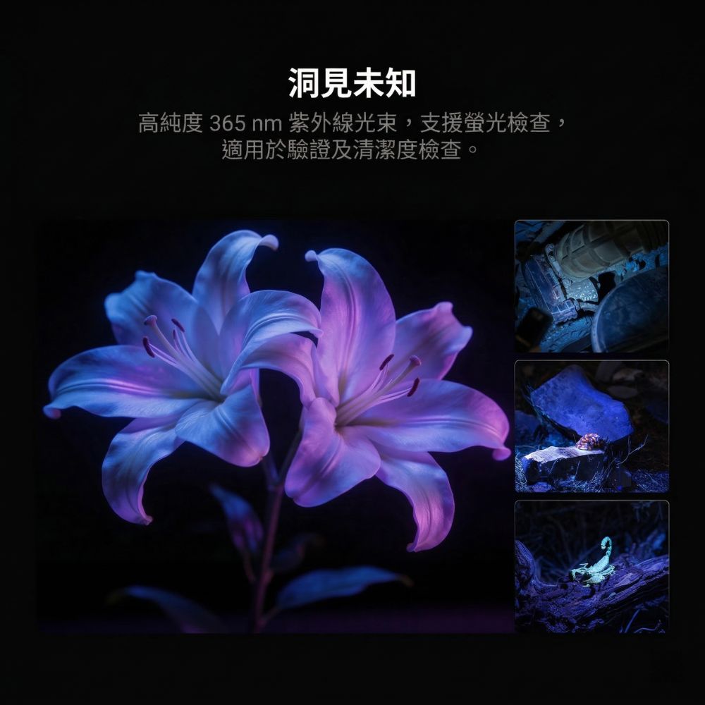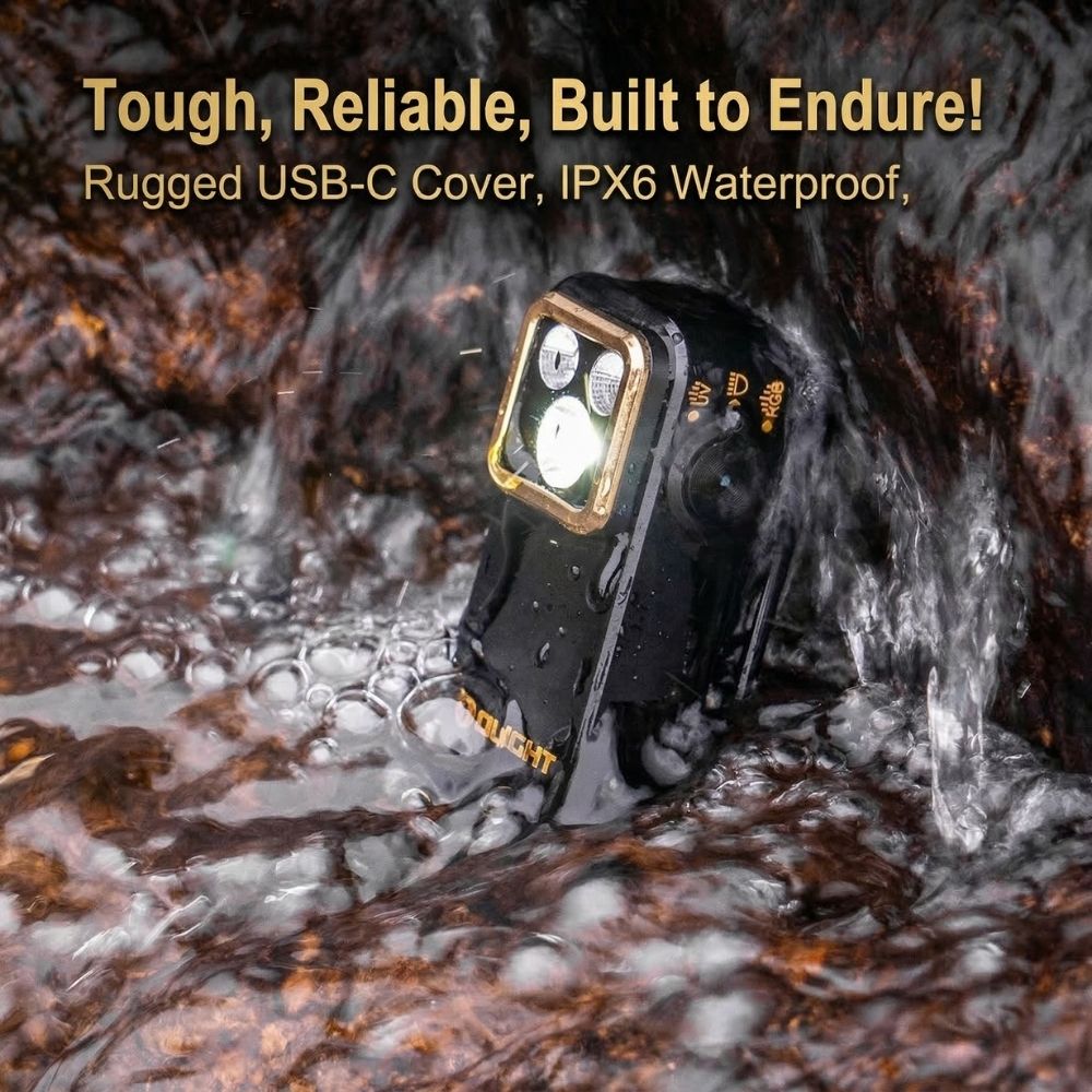 採用創新的旋轉轉盤設計,切換光源精準迅速。支援通用 Type-C 快速充電,並具備金屬防塵蓋,即使充電孔開啟仍具備 IPX6 防水等級。