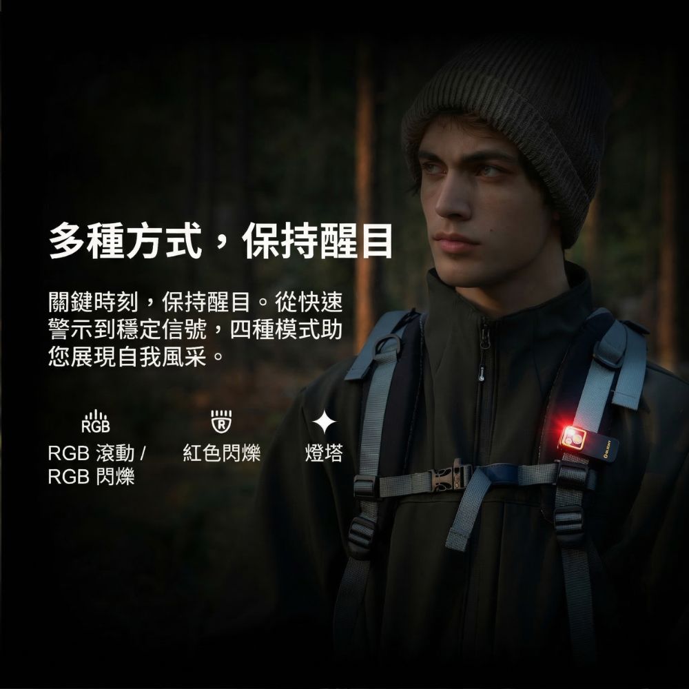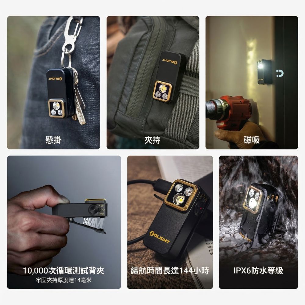 配備夾開口達 14mm 的高強度背夾,輕鬆夾在背包、帽沿或口袋。內建強力磁鐵可吸附於金屬表面,提供穩定且多角度的照明支援。
