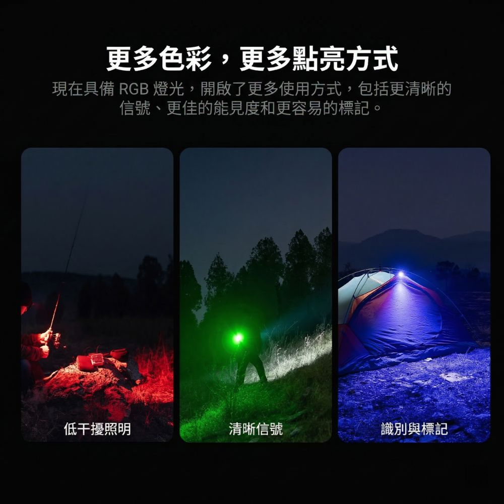 | 特殊功能 | 紅光信標 (Beacon)、SOS求救模式、中心電量指示燈 |