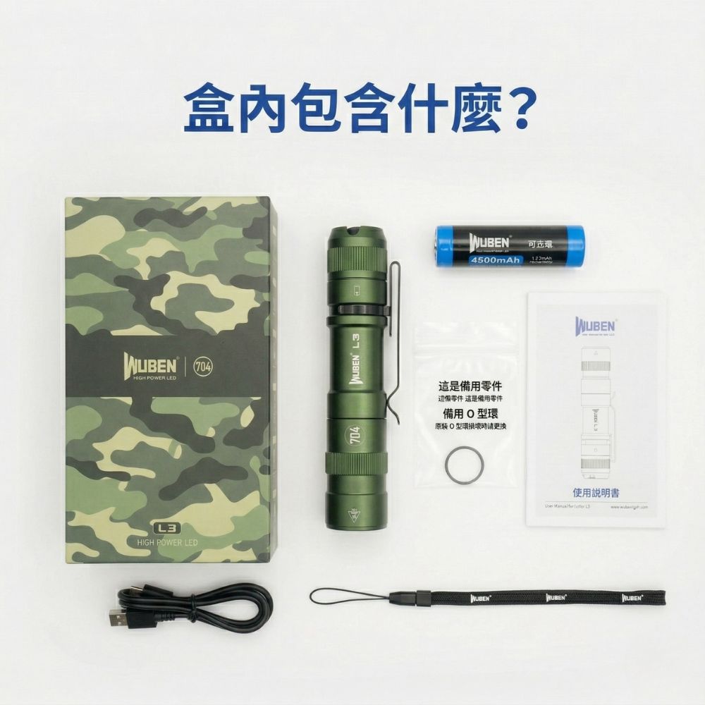 Wuben L3 3000 流明 226米 強光便攜手電筒 強續航 戰術尾按 日常照明 物理鎖定