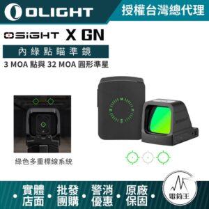 OLIGHT Osight X GN 3MOA 點 + 32MOA 圓形標線 內綠點瞄準鏡 大視窗 磁吸充電蓋 OAL高硬度外殼